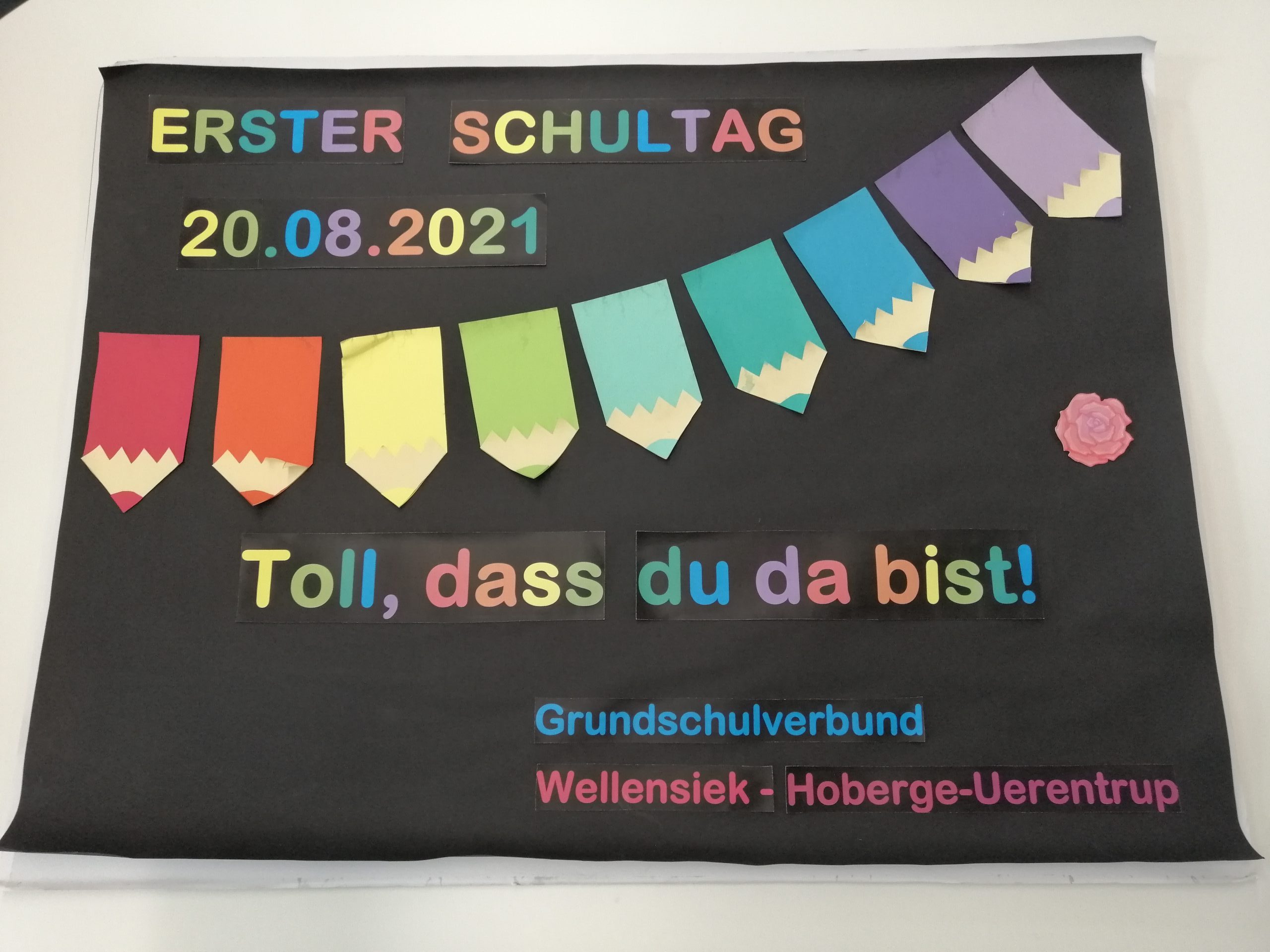 Viele fröhliche Kinder nahmen an den Einschulungsfeiern im Schulverbund teil und starteten ihre Schulkarrieren. Während die Kinder und Familien im Wellensiek in der Heilig Geist Kirche zu einer Einschulungsveranstaltung mit Gottesdienst geladen waren, traf sich in Hoberge die Schulgemeinde auf dem Sportplatz um die Jüngsten im Rahmen eines Gottesdienstes zu segnen und im Rahmen einer schulischen Einführungsveranstaltung herzlich zu begrüßen. Pfarrerin Wessel vertrat Pfarrer Sternberg, dem wir gute Besserung wünschen, und Pfarrer Tosberg leitete den Gottesdienst in Hoberge, Jochen Schwalbe begleitete musikalisch, zum zweiten Mal unter freiem Himmel.