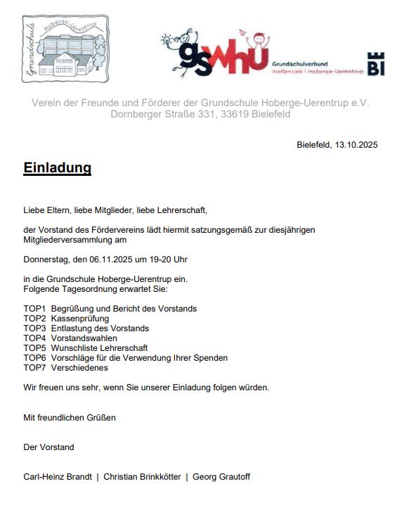 Fördervereinssitzung Hoberge am 06.11.2025 (Do.)