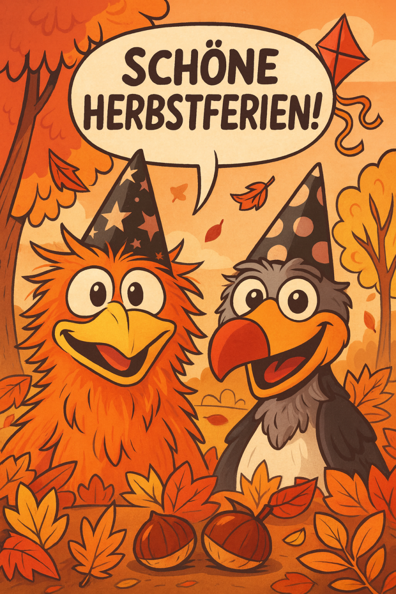 Wir wünschen allen eine schöne und entspannte Herbstferienzeit. Genießt die Pause und kommt gut erholt zurück. Bis in zwei Wochen!