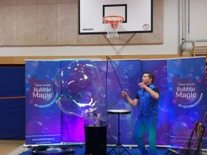 Im Wellensiek war heute für alle Klassen der Seifenblasenkünstler Bubble Magie zu bestaunen. Hier wurden wundervolle Gebilde aus Seifenblasen gebaut. Als krönenden Abschluss durfte jedes Kind einmal in die riesige Seifenblase. Vielen Dank an den Förderverein für dieses schöne Event.