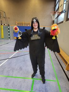 In Hoberge wurde in den Klassen, in der Turnhalle und auf dem Schulhof gefeiert. Alfons und Krätze sind vom Wellensiek nach Hoberge geflogen.